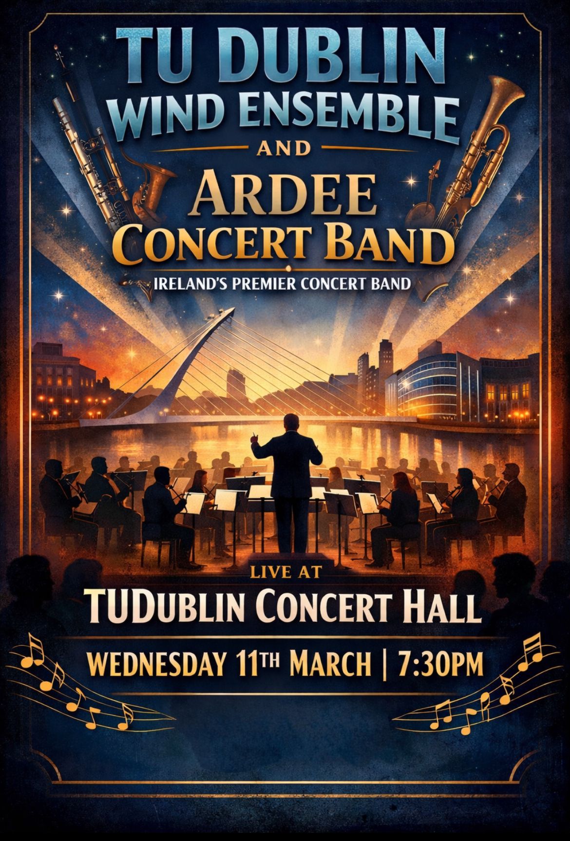 On Wednesday 11th March, Ardee Concert Band will join forces with the TUDublin Wind Ensemble for an evening of music in the Concert Hall in Grangegorman’s East Quad. Under the joint batons of Ronan O’Reilly and Conor O’Riordan we are looking forward to this joint concert in one of Dublin’s finest concert venues. Admission is Free.